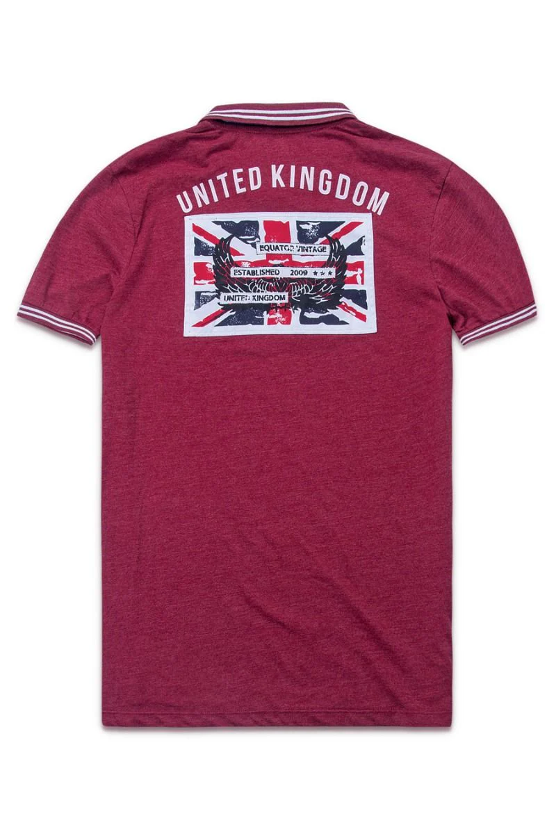 Play right and always come out on top with this polo. It has a fold-down collar with two-button closure, short sleeves and England style flag at the back made to be worn with your favorite black denim.